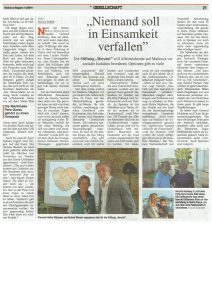 Eine Journalistin der bekannten Wochenzeitschrift war persönlich vor Ort und konnte sich ein Bild über die Fortschritte und Ziele von herztat machen. Sie interviewte eine von einer Patin begleitete Seniorin und schildert den Fall anschaulich in ihrem Beitrag.