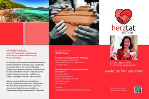 Erstmals haben wir einen separaten Prospekt zur Ansprache von Interessenten , die herztat Als Pate oder Spender unterstützen möchten, entwickelt. Hier können sich sozial Engagierte informieren und entscheiden, welche Form der Unterstützung für sie die geeignete ist.